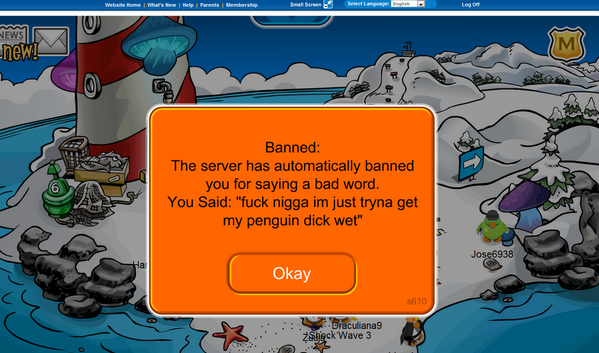Club Penguin Banned Me For Saying Fak : The funny reasons trolls were banned from club penguin 24.. Super club penguin guides spanish section. I got banned for say nigger. Disney's interactive chat game, club penguin, is recommended for kids ages 6 to 14. apparently kids ages 6 to 14 don't know how to have any f***ing fun. Well, i got good news! Club penguin banned for saying hi.