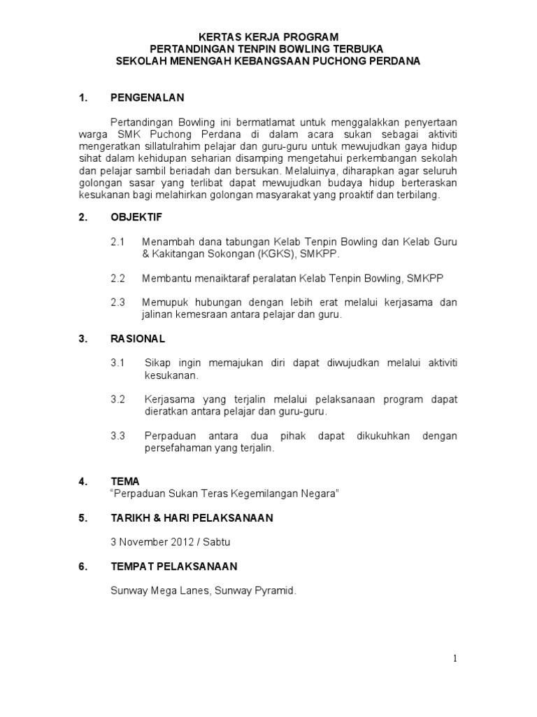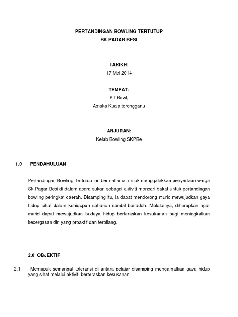 Related : Kertas Kerja Pertandingan Bowling - Diharap program ini dapat dilaksanakan dengan jayanya dan mencapai objektif yang..