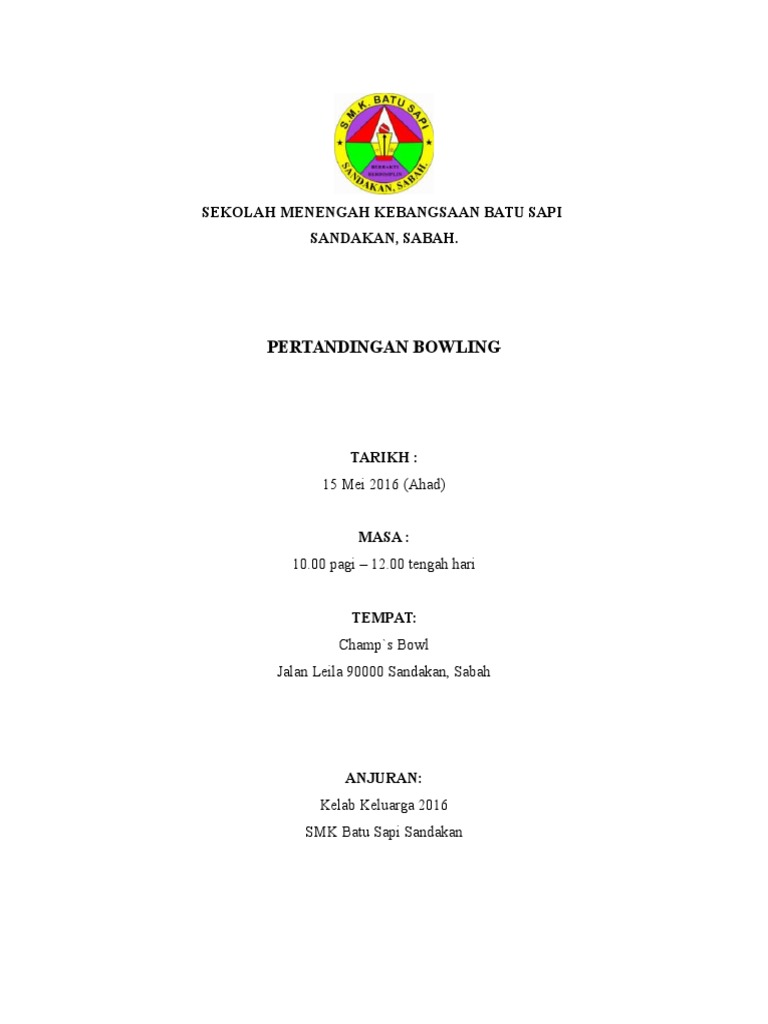 Borang Penyertaan Bowling 2015 from cdn.slidesharecdn.com Kertas kerja pertandingan bowling ipg kampus temenggong ibrahim tarikh: Download kertas kerja pertandingan bercerita. Pertandingan ini akan berlangsung pada 8 september bermula jam 8.00 pagi di gelanggang tenis ipg keningau. Gambar ini di ambil dari kredit berikut : Pertandingan yang berlangsung dengan meriah tersebut dihadiri oleh staf kbri/ptri wina beserta keluarga. Lowongan kerja pt pabrik kertas indonesia (pt.pakerin). 27 januari 2019/in diari pij /by admin. (nama program) ( bahasa melayu sahaja ).