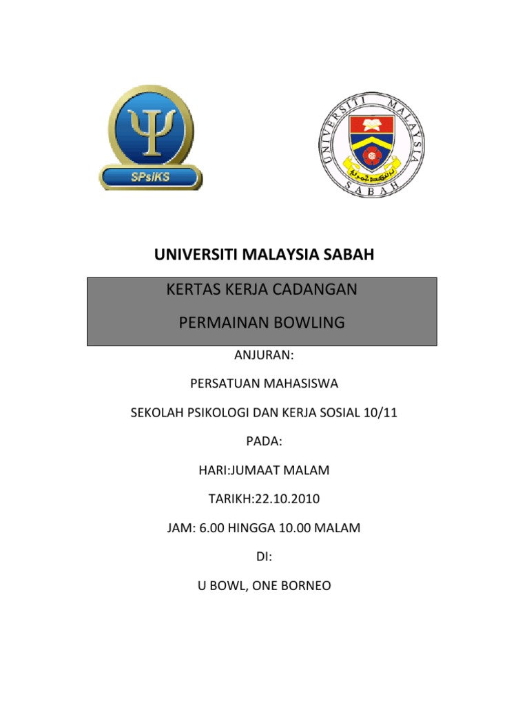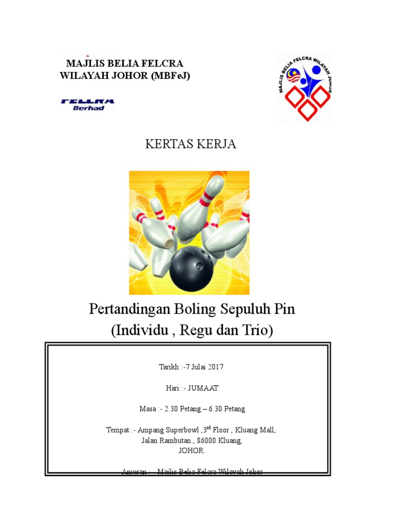 Kertas Kerja Pertandingan Bowling - Diharap program ini dapat dilaksanakan dengan jayanya dan mencapai objektif yang.. Abdul jalil repin untuk membuat kertas kerja dan dibentangkan kepada semua ahli jawatankuasa kelab untuk. Kertas kerja sambutan bulan kaunseling: Kertas kerja program misi antarabangsa mahasiswa fakulti ekonomi dan muamalat cadangan pertandingan video game tempat tarikh hari : Berikut beberapa aturan sistem pertandingan bola basket yang biasa digunakan dalam berbagai kompetisi, lengkap dengan bagan dan cara menghitung jumlah pertandingan. Slaid taklimat upu online sesi 2019.